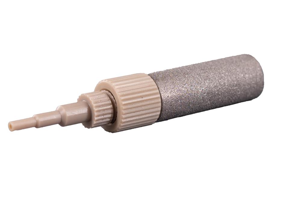 Mobile Phase Filter, 10 um, Stainless Steel, 0.375 inch OD, 1 inch long, tripod connector. EPP-Porous Products brand. Bulk Price.