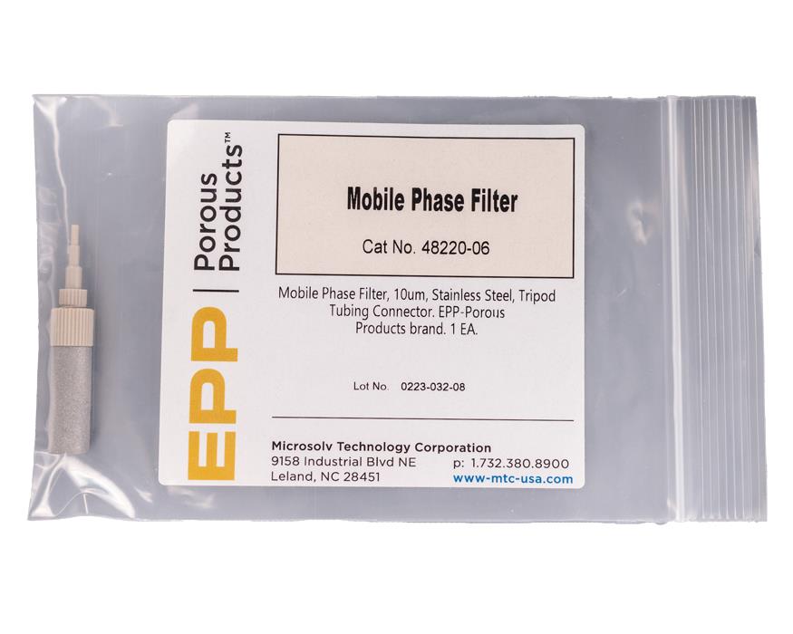 These 316L Stainless Steel filters are manufactured to provide a very high filter capacity and are passivated in production with a 30% nitric acid solution. The 10 um porosity will filter out larger undissolved particles from your solvents with lower back pressure than 2 or 5 um filters, before they enter your HPLC pumps, columns and instrument.