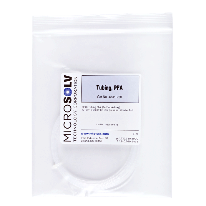 Tubing, PFA, 0.020 inch (0.50 mm) ID, 1/16th inch (1.6 mm) OD, low pressure, 5 meter roll, ARE-Applied Research brand. 1 EA.