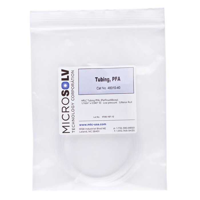 Tubing, PFA, 0.040 inch (1.0 mm) ID, 1/16th inch (1.6 mm) OD, low pressure, 5 meter roll, ARE-Applied Research brand. 1 EA.