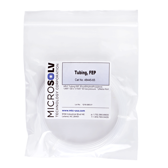This FEP (Fluoroethylene Propylene) low pressure tubing is chosen for use in Ion Chromatography Applications, but can be used in all low-pressure, laboratory applications including before and after an HPLC Pump such as with Mobile Phase Delivery and Solvent Waste Systems. Also known as Teflon FEP.