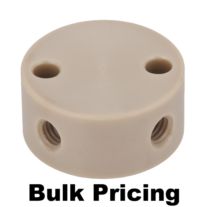 Union, Connector, Tee, high pressure, 0.30 mm / 0.012 inch through hole with 10-32 screw threads. PEEK, round with an internal "T". ARE-Applied Research brand. Bulk Price.