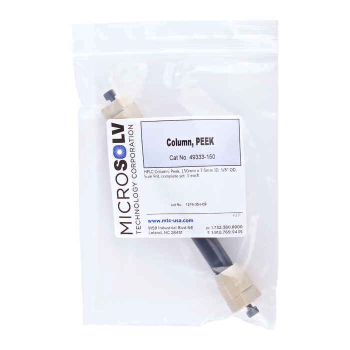 This column is chosen when sample compounds could negatively interact with stainless steel such as many proteins, peptides, nucleic acids and other bio compounds, as well as some small molecules and many ions.