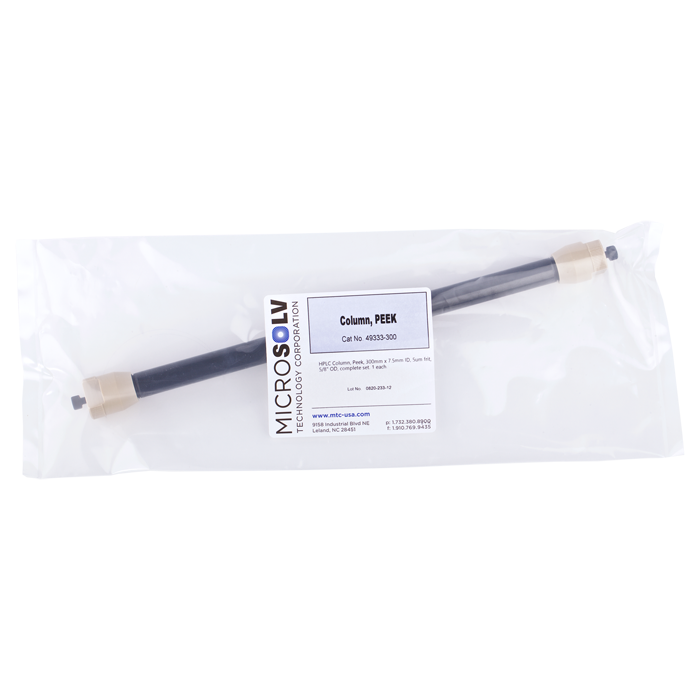 This column is chosen when sample compounds could negatively interact with stainless steel such as many proteins, peptides, nucleic acids and other bio compounds, as well as some small molecules and many ions.