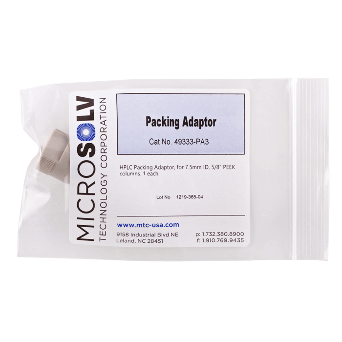 This Packing Adapter is made for all ARE brand 7.5 mm ID PEEK columns when using our 7.5 mm ID packing reservoir. This adapter is designed for packing only All-PEEK HPLC column hardware and not recommended for use with stainless steel packing systems.