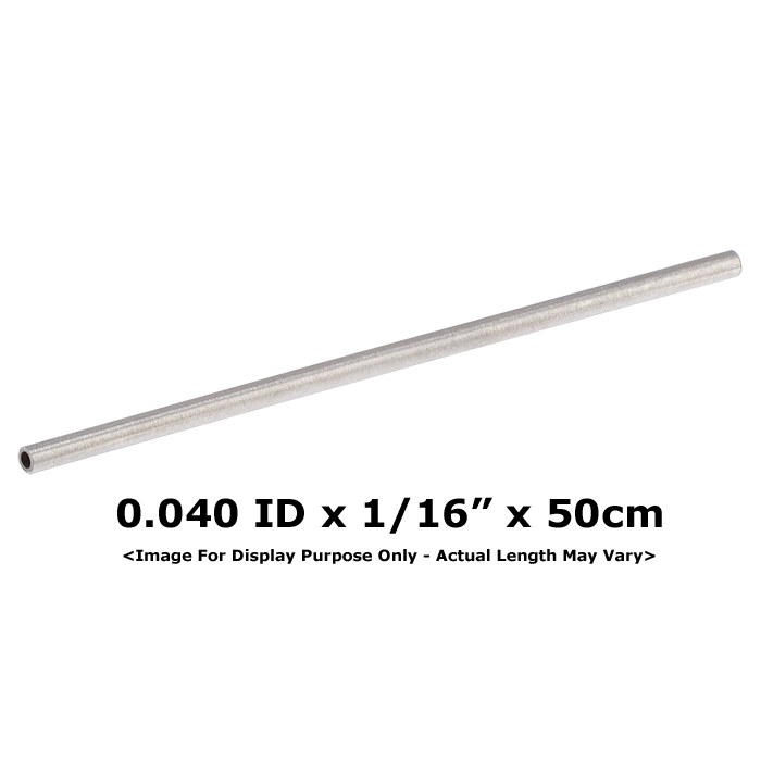 Tubing, Stainless Steel, Pre-Cut, 0.040 inch (1.00 mm) ID, 1/16 inch (1.60 mm) OD, HPLC grade, 50 cm long. ARE-Applied Research brand. 1 EA.