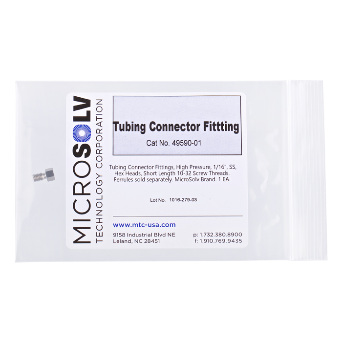 Our tubing connector nuts are expertly designed to connect stainless steel tubing in the high-pressure zones of HPLC systems. Made from premium 316L stainless steel, these fittings feature a standard hexagonal head for easy wrenching and a 12 mm overall length.
