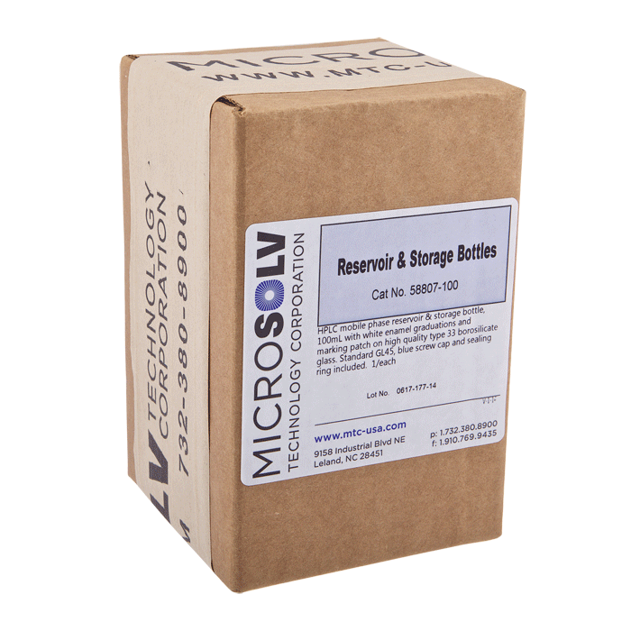 Bottle, HPLC Mobile Phase Storage, Glass, Clear, 100ml, Screw Top, GL45 Threads. MICROSOLV Brand. 1 EA.