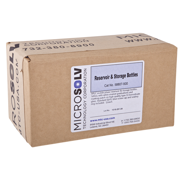 Bottle, HPLC Mobile Phase Storage, Glass, Clear, 500ml, Screw Top, GL45 Threads. MICROSOLV Brand. 1 EA.