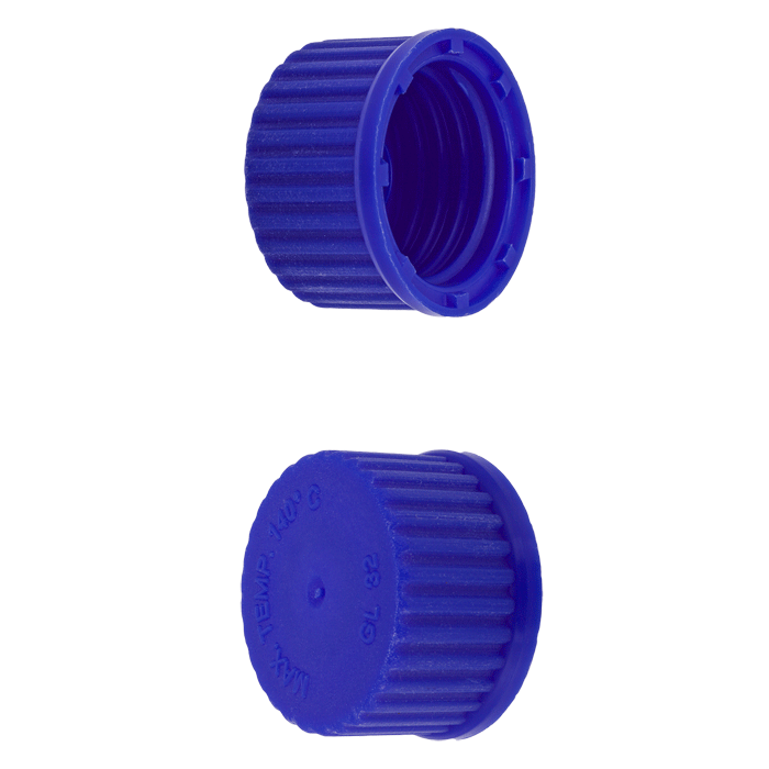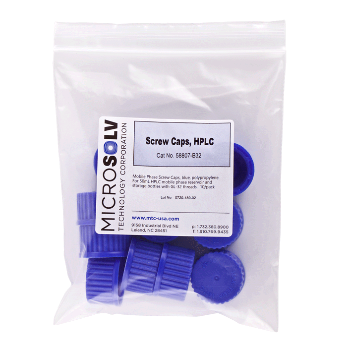 These Caps are made of Polypropylene and have GL32 threads making them a good choice for smaller Mobile Phase Reservoir Bottles when the Bottle is empty to prevent dust and dirt from entering it.