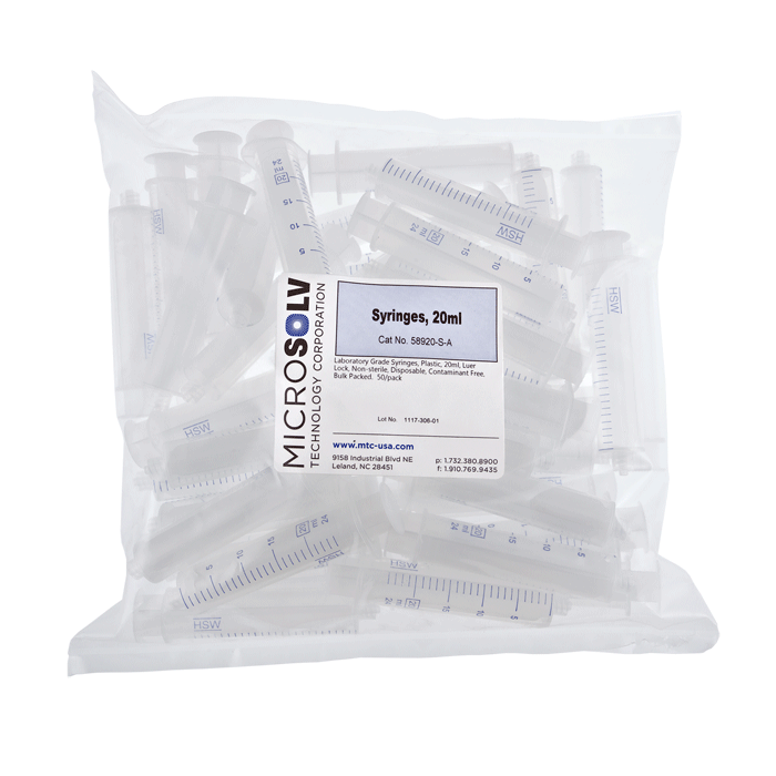 Syringe, Chrom. Disposable, 20ml, Luer Lock, Non Sterile. MICROSOLV Brand. 50/PK.