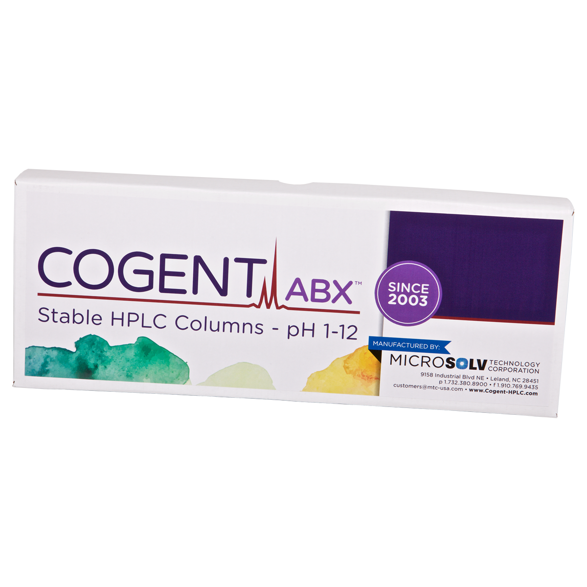 This Cogent RP C18 ABX™ Column is a premium value and used in HPLC with extreme pH (2-12) in the Mobile Phase for Acidic or Basic Compounds. It is specially end capped (bulky) and is bonded with an 18 carbon aliphatic hydrocarbon to the highest purity silica available. This column is ideal as an Alternate in USP Methods that use the L1 Classification with acids or bases with a very high or a very low pKa. This Column is very rugged and can be used in typical Reversed Phase HPLC.