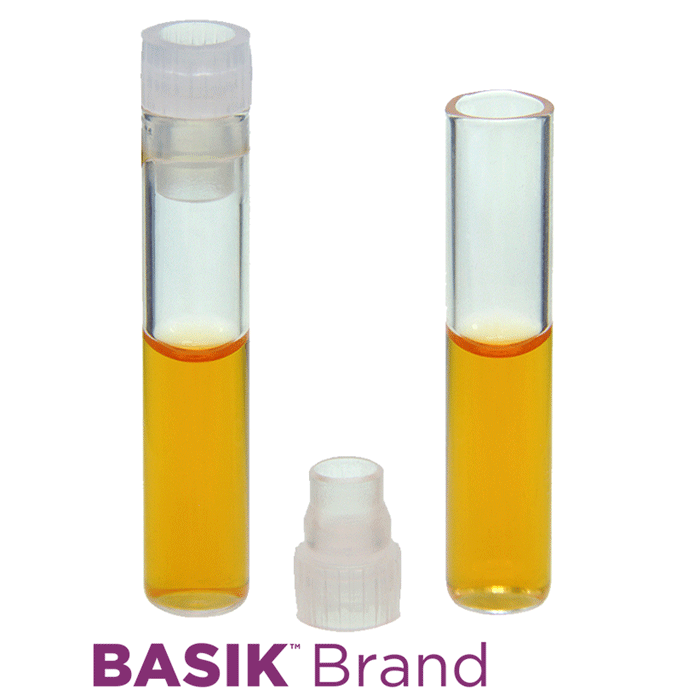 Vial & Cap Kit includes 100 EA 1ml, Push Top, Clear Autosampler Vials and 100 EA matching, translucent, polyethylene Push Caps for Micro-Insert. BASIK Brand Easy Purchase Pack. 1/PK.