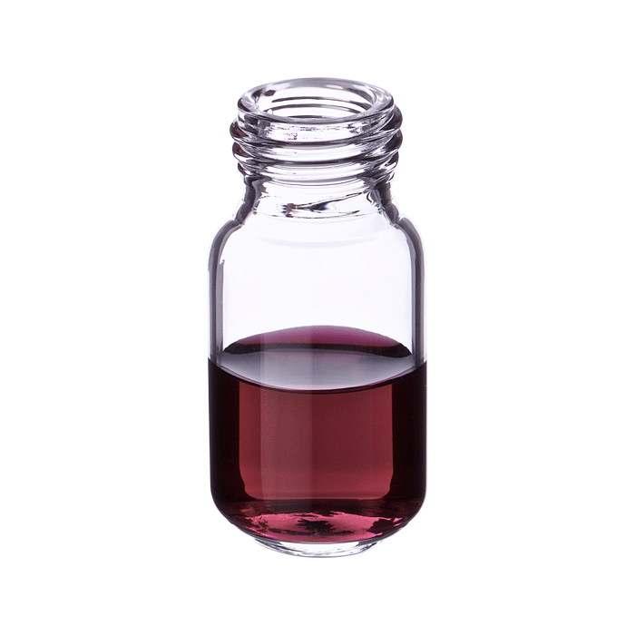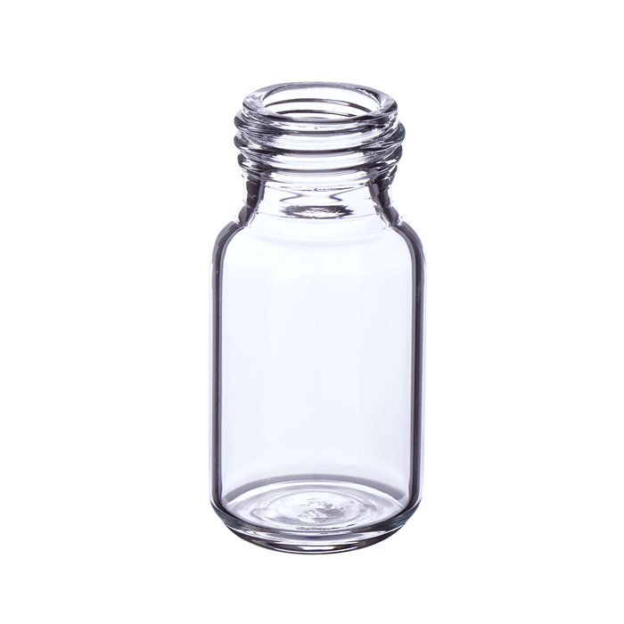 Vials, Headspace, Screw Top, Glass. Clear, 10ml, 18mm precision threads, 22.5x46mm outer dimensions, Rounded Bottom. CTC Compliant. BASIK Brand. 100/PK.