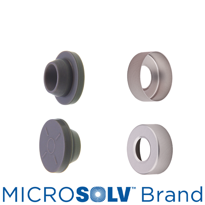 Caps, Headspace, Crimp Top, supplied with Grey Butyl Rubber Stoppers to be inserted into Aluminum, Silver Caps with 10mm center holes. For use with 20mm Crimp Top Headspace Vials. MICROSOLV Brand. 100/PK.