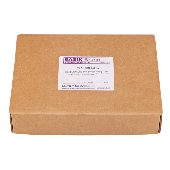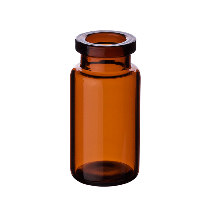 Vials, Headspace, Crimp Top, Glass. Amber, 10ml, 20mm Serum Finish, 22.5x46mm outer dimensions, Flat Bottom with a Long Neck. Agilent Compatible. BASIK Brand. 100/PK.