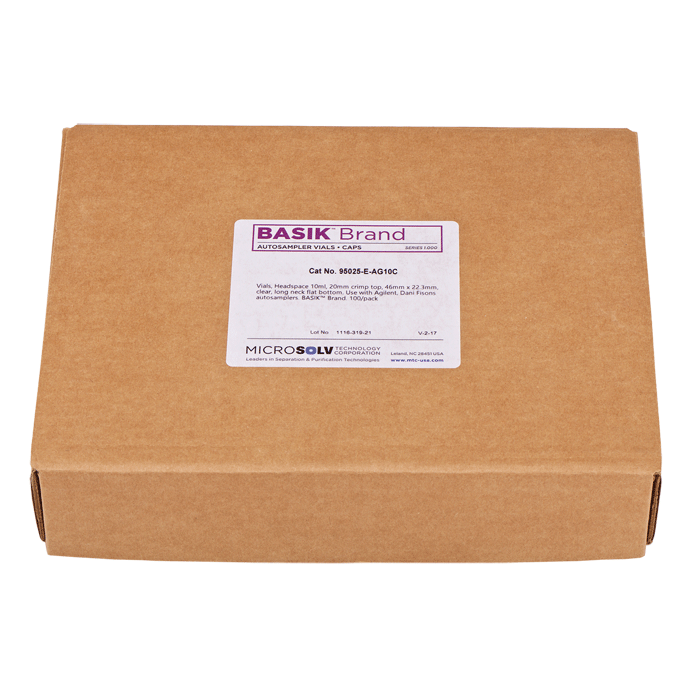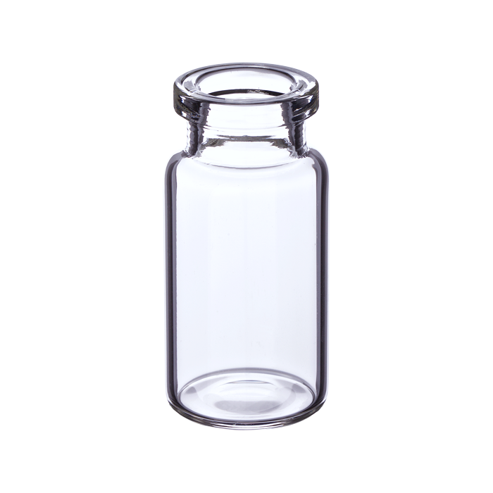 Vials, Headspace, Crimp Top, Glass. Clear, 10ml, 20mm Serum Finish, 22.5x46mm outer dimensions, Flat Bottom with a Long Neck. Agilent Compatible. BASIK Brand. 100/PK.