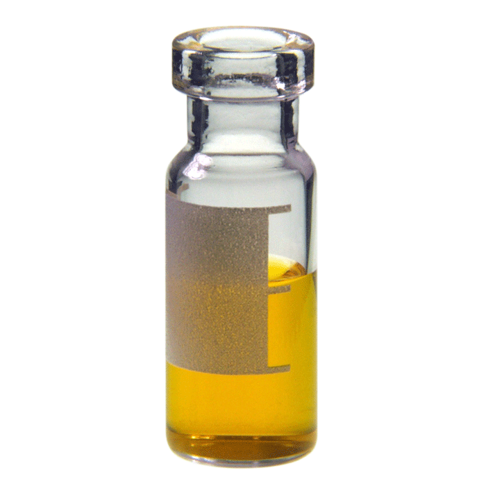 Vials, Crimp Top, Glass. Clear, 2ml, with Write-On Patch and fill lines. Deactivated. An 11mm Serum Finish with 12x32mm outer dimensions. For use as an autosampler vial. BASIK Brand. 100/PK.