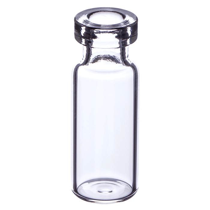 Use with 11mm aluminum crimp caps. These narrow opening vials have serum finish tops that provide the best seal for chromatography, when used properly with correct aluminum crimp caps.