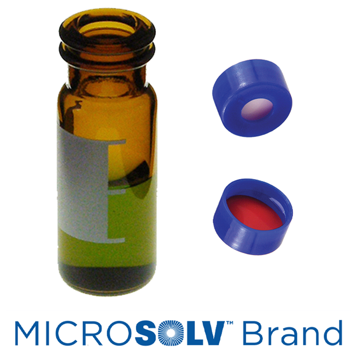 Vial & Cap Kit includes 100 EA 2ml, Snap Top, Amber Autosampler Vials with Write-On Patch and 100 EA matching Snap Caps with Silicone Rubber / PTFE Septa fitted in the Blue Caps. MICROSOLV Brand Easy Purchase Pack. 1/PK.