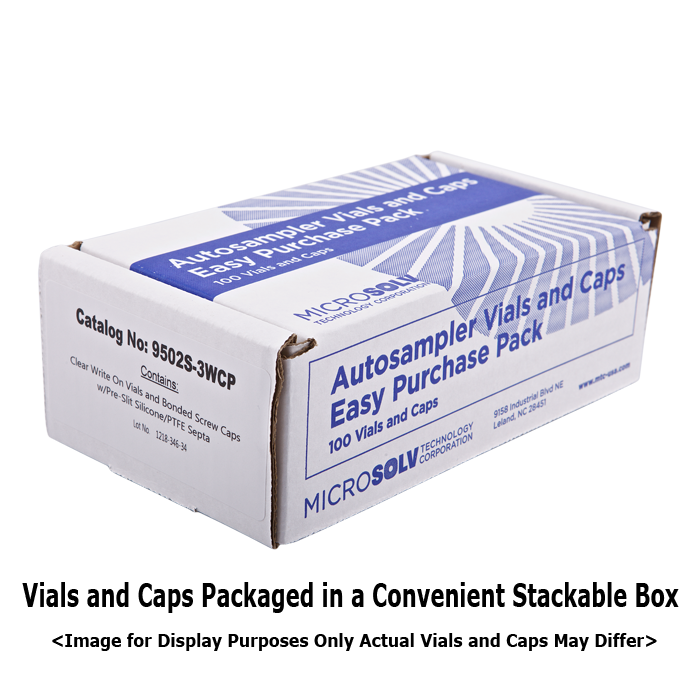 Easy Purchase Packs are a convenient way to order and inventory autosampler vials with their matching caps. The kit packaging will open and re-close making it useful for keeping vial and cap types matched, organized and clean during use.