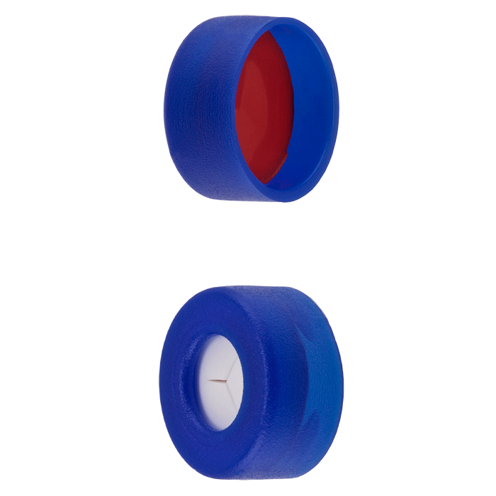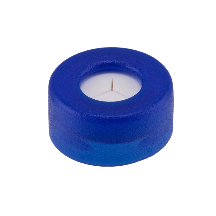 Caps, Snap Top, with Silicone Rubber / PTFE Pre-Slit (Y Shape) Septa, fitted in smooth, polyethylene, Blue Caps. For use with 11mm, 12x32mm Snap Top autosampler vials. MICROSOLV Brand. 100/PK.
