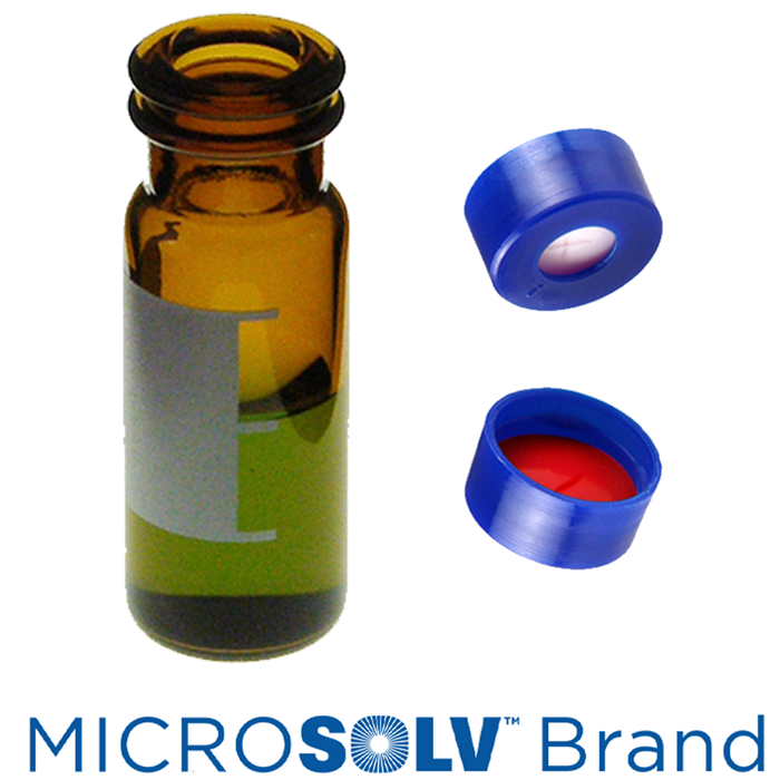 Vial & Cap Kit includes 100 EA 2ml, Snap Top, Amber Autosampler Vials with Write-On Patch and 100 EA matching Snap Caps with Silicone Rubber / PTFE Pre-Slit, Septa fitted in the Blue Caps. MICROSOLV Brand Easy Purchase Pack. 1/PK.