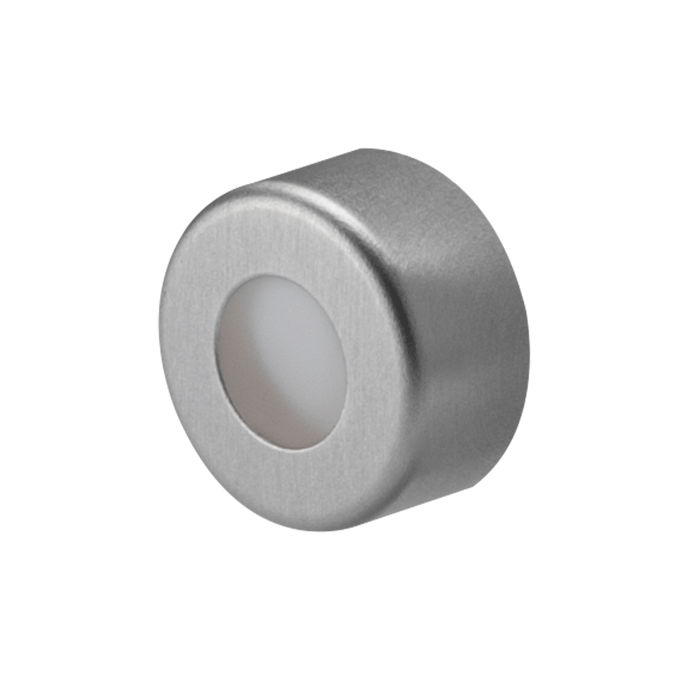 Caps, Crimp Top, with PTFE Septa, fitted in aluminum, Sliver Caps. For use with 11mm Crimp or Snap Top, 12x32mm autosampler vials. BASIK Brand. 1000/CS.