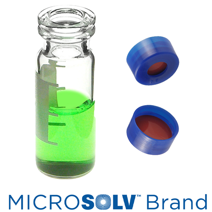 Vial & Cap Kit includes 100 EA 2ml, Snap Top, Clear Autosampler Vials with Write-On Patch and 100 EA matching Snap Caps with Red Rubber / PTFE Septa fitted in the Blue Caps. MICROSOLV Brand Easy Purchase Pack. 1/PK.