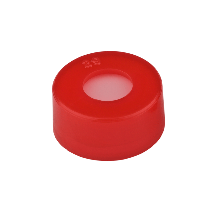 Caps, Snap Top, with White PTFE Septa, fitted in smooth, polyethylene, Red Caps. For use with 11mm, 12x32mm Snap Top autosampler vials. MICROSOLV Brand. 1000/CS.
