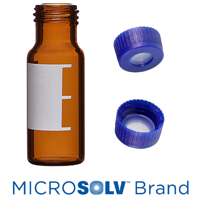 Vial & Cap Kit Includes 100 EA 2ml, Screw Top, Amber Autosampler Vials with Write-On Patch and fill lines and 100 EA matching Screw Caps with Clear Silicone Rubber / Clear Tefzel, ultra-pure Septa, fitted in the Blue Caps. MICROSOLV Brand Easy Purchase Pack. 1/PK.
