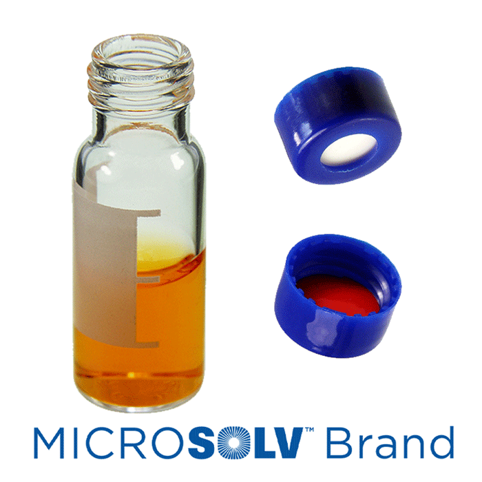 Vial & Cap Kit Includes 100 EA 2ml, Screw Top, Clear Autosampler Vials with Write-On Patch and fill lines and 100 EA matching Screw Caps with Silicone Rubber / PTFE Septa, fitted in the Robo Style, Blue Caps. MICROSOLV Brand Easy Purchase Pack. 1/PK.