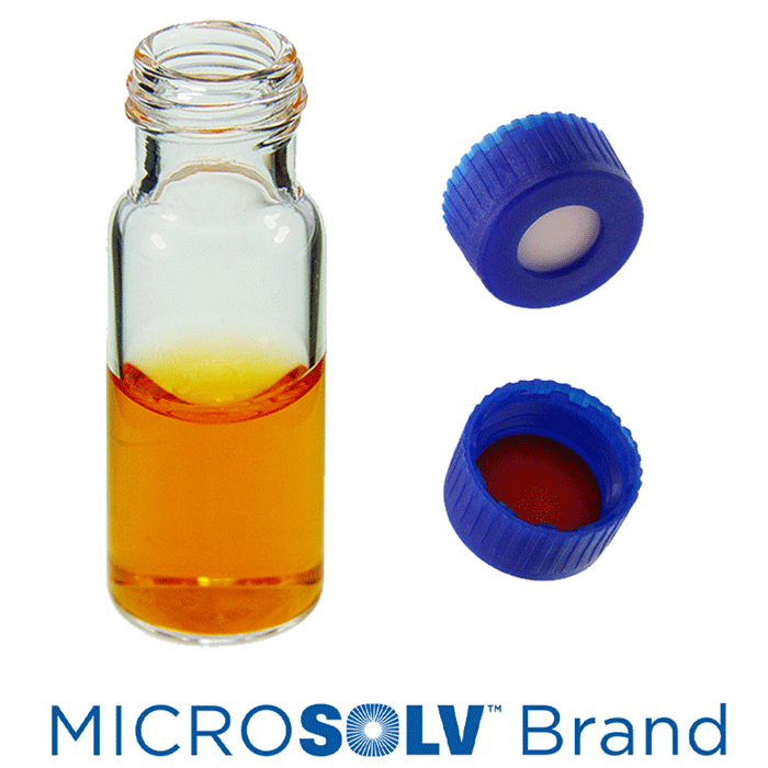 Vial & Cap Kit Includes 100 EA 2ml, Screw Top, Clear Deactivated Autosampler Vials and 100 EA matching Screw Caps with Silicone Rubber / PTFE Septa, bonded in the Blue Caps, MICROSOLV Brand Easy Purchase Pack. 1/PK.