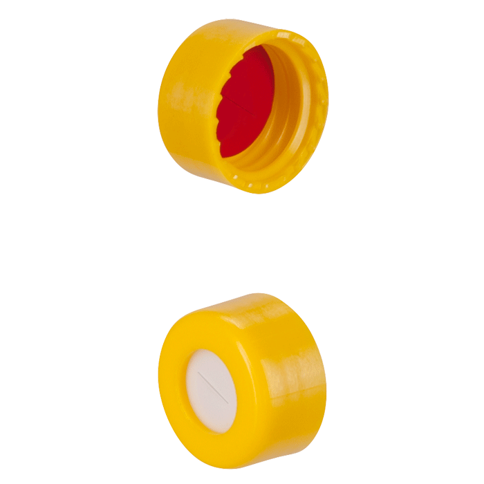 Pre-slit for easy penetration by autosampler needles and to prevent "Septa Plunge". Compares to Thermo / National Scientific DP® Cap.