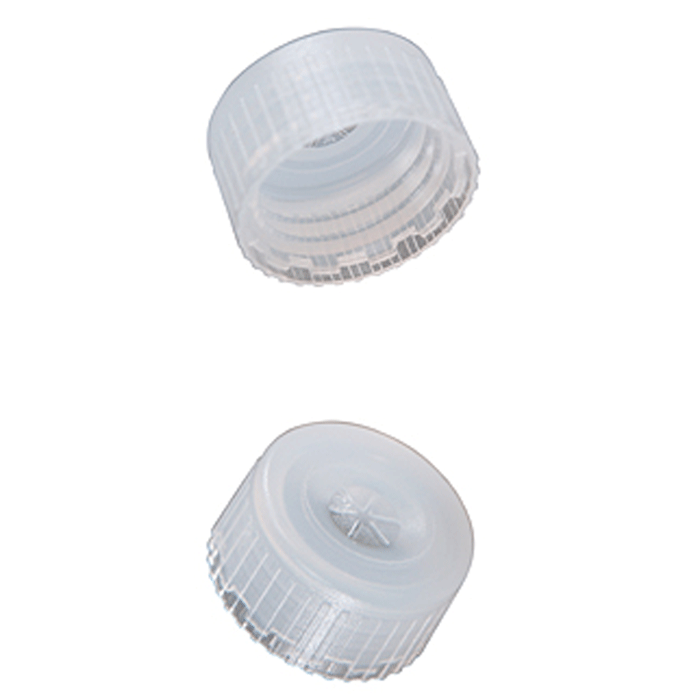 This low-extractables, PTFE Cap is chosen when Polypropylene and Silicone Rubber cannot be used in your analysis.
