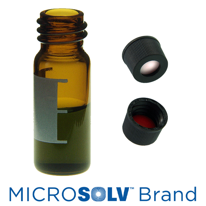 Vial & Cap Kit Includes 100 EA 2ml, Wide Mouth, Screw Top, Amber Deactivated Autosampler Vials with Write-On Patch and fill lines and 100 EA matching Screw Caps with Silicone Rubber / PTFE Septa, bonded in the Black Caps, MICROSOLV Brand Easy Purchase Pack. 1/PK.