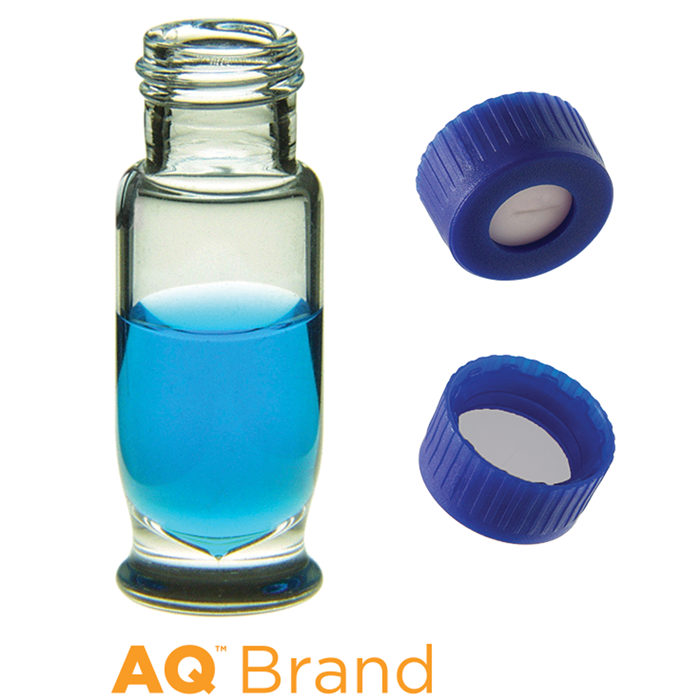 Vial & Cap Kit Includes 100 EA 1.8ml, Maximum Recovery, Screw Top, Clear Autosampler Vials and 100 EA matching Screw Caps with White Silicone Rubber / Tan PTFE, Pre-Slit Septa bonded in the Blue Caps. AQ Brand Easy Purchase Pack. 1/PK.