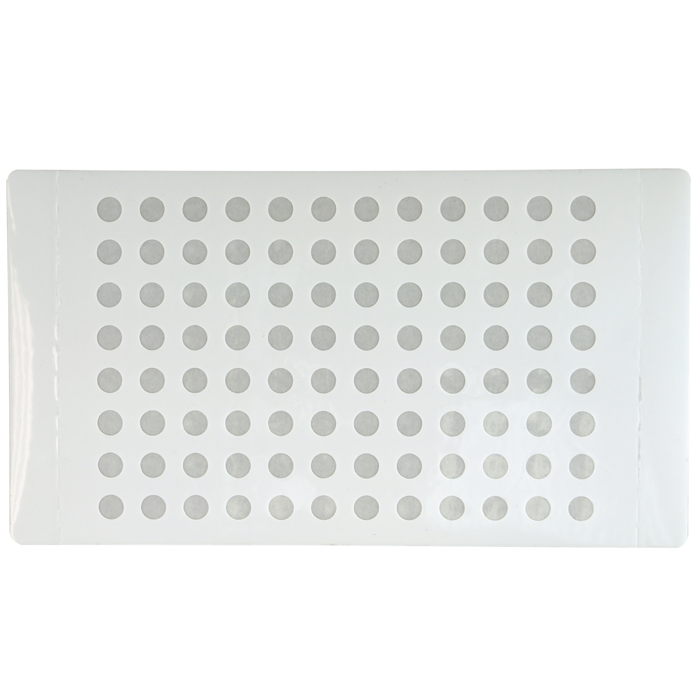 Film, Zone Free, Sealing for Micro-Sample Management System or 96 Well Plates. 70um polyethylene top layer and inert white layer / Adhesive Free Zones. U-2D Brand. 10/PK.