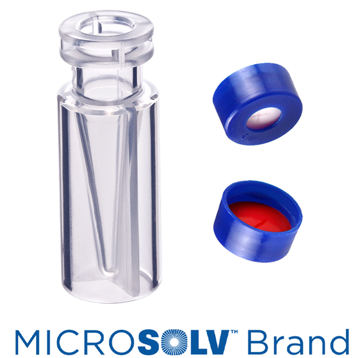 Vial & Cap Kit includes 100 EA 300ul, Snap Top, Clear polypropylene LCMS Compatible Autosampler Vials and 100 EA matching Snap Caps with Silicone Rubber / PTFE Pre-Slit Septa fitted in the Blue Caps. MICROSOLV Brand Easy Purchase Pack. 1/PK.