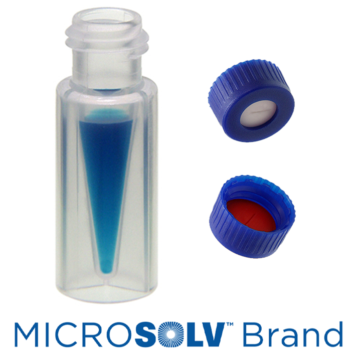 Vial & Cap Kit Includes 100 EA 300ul, Screw Top, Clear polypropylene Autosampler Vials and 100 EA matching Screw Caps with Silicone Rubber / PTFE Pre-Slit Septa, bonded in the Blue Caps, MICROSOLV Brand Easy Purchase Pack. 1/PK.