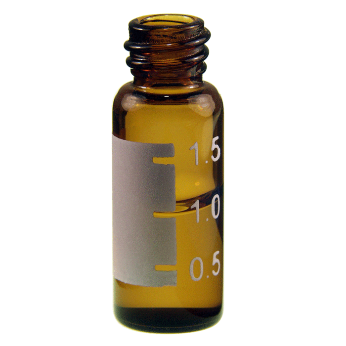 First hydrolytic, Class A, Borosilicate Glass, amberized. Write-On Patch and fill lines are epoxy paint which will resist smearing during use. Features a narrow mouth which may be useful to reduce evaporation and requires an 8mm screw cap.
