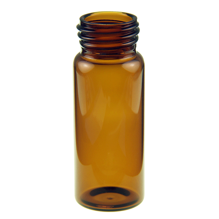 Vials, EPA Style, Glass. Amber, 20ml. 72.5x27.5mm outer dimensions. For use as an EPA test vial or storage bottle. ND24 threads. MICROSOLV Brand. 100/PK.