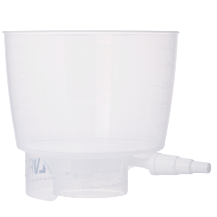 SOLVFil™ 500 is constructed as a disposable, single piece filtration device from high purity FDA grade polypropylene which eliminates solvent leaking and spills with virtually no extractables and chemically inert. The fill reservoir has a 1/2 liter (500ml) capacity and a 90mm diameter filtration area making filtration much faster than traditional methods and easier and safer. The GL45 Thread matches our Mobile Phase Reservoir Bottles and includes a Y connector for the vacuum line.