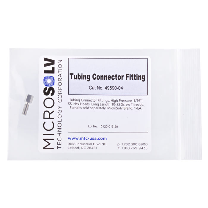 Our tubing connector male nuts are designed to connect stainless steel tubing in the high-pressure zones of HPLC systems. Made from 316L stainless steel, these fittings feature a standard hexagonal head for easy wrenching and a 19 mm overall length.