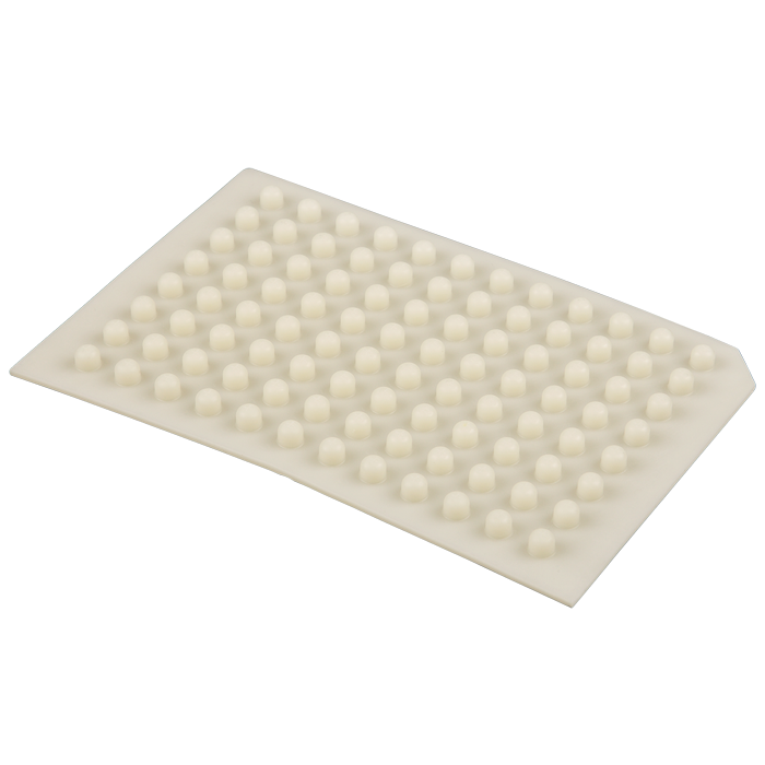 “Pre-Racked” for easy management, filling, visualization and thermal control, these Inserts can easily be filled using single or multi-channel pipettors. The supplied Rack is removable from the stackable BASE which is re-usable. Seal the racked Inserts with the supplied polymeric Mat (use with HPLC organic solvents) for storage or use in an autosampler that accepts standard, ANSI 96 Well Plates. Click HERE to view an MSM supplied with a Silicone Rubber mat for aqueous samples.