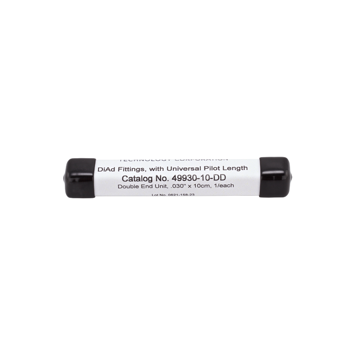 This Di-Ad™ is very convenient for laboratories that use multiple column brands and want to use 0.030" (762um) ID x 100mm (3.94") long tubing with perfect cut tips. Pressure rating for these connectors is 10,000 psi and are HPLC solvent resistant.