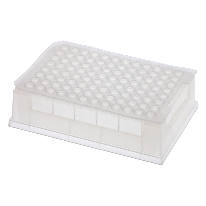 Micro-Sample Management System. Complete Set, includes 96 individual, 500uL glass inserts with RSA-Pro X surfaces in a Rack and Base plus a matching Silicone Rubber, plug style, Sealing Mat. U-2D Brand. 1 EA.
