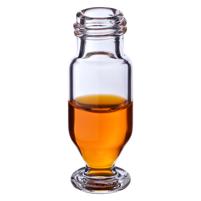 Compares to Champagne Style Vials. Features a 15ul residual volume for most autosamplers due to the center draining, inner U shape.