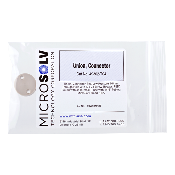 This all-PEEK union allows you to connect three pieces of low pressure, 1/16th tubing. Three finger tight, low pressure male nuts with 1/4-28 threads and 3 matching ferrules are required. These fittings and tubing are sold separately.