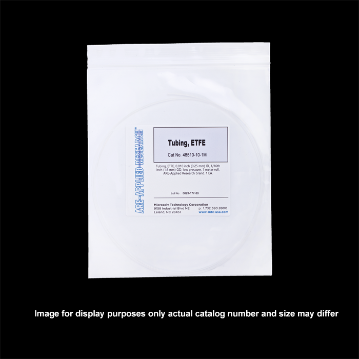 Tubing, ETFE, 0.010 inch (0.25 mm) ID, 1/16th inch (1.6 mm) OD, low pressure, 5 meter roll, ARE-Applied Research brand. 1 EA.